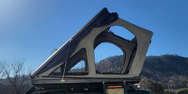 The triangular hardshell tent, installed on the vehicle’s top, is designed for easy deployment by a single person. The piloti structure applied to the lower part reduces ground vibration, ensuring stable use without shaking.